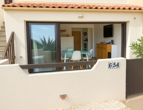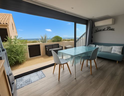 Appartement situé dans la Résidence La Grande Bleue à Port-Leucate, en rez-de-chaussée pour 4 personnes, collé à la plage.